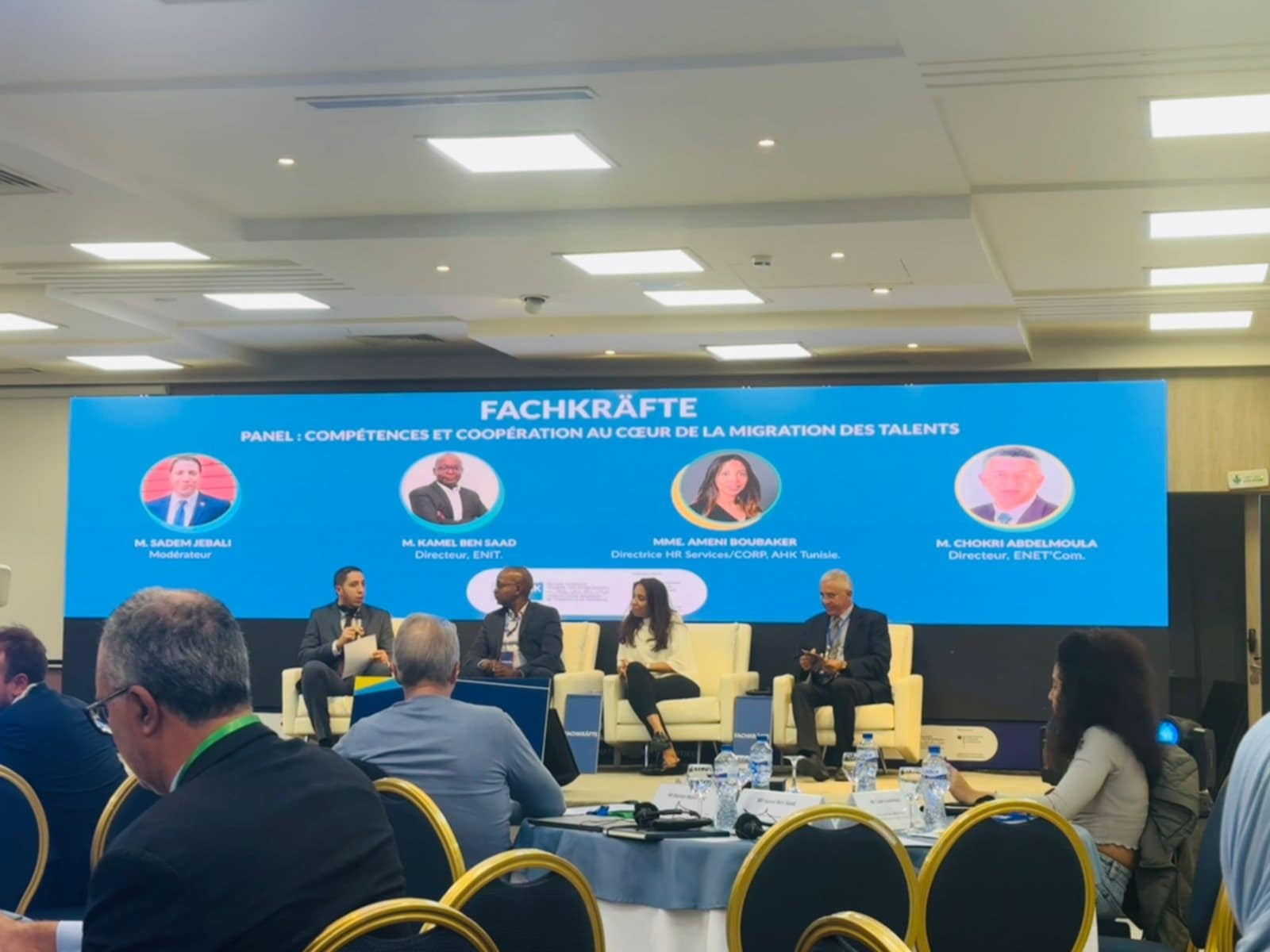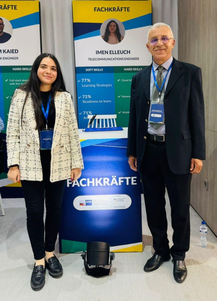 L'Ecole Nationale d'Electronique et des Télécommunication de Sfax est ravi par sa présence hier 28 novembre 2024 au Kickoff du projet  « Fachkräfte » (Travailleurs Qualifiés). Un projet ambitieux du AHK (Chambre Tuniso-Allemande de l’Industrie et du Commerce) pour les jeunes talents de l'ENET'Com pour des opportunités d'embauche dans des industries Allemandes. Cette participation a été fructueuse à travers la présentation des formations d'ingénieurs à l'ENET'Com, les missions, les stratégies et les valeurs ajoutées garantissant le façonnages des futurs technologies dans le monde industruel, ainsi que la participation d'un ingénieur de l'ENET'Com et deux élèves ingénieurs en classe terminale qui ont confronté des chefs d'entreprises allemands pour présenter leur compétences et discuter les moyens et les conditions pour l'embauche dans des industries allemandes. L'ENET'Com souhaite la bonne continuation et la réussite à ce projet, et remercie infinement l'AHK et toute l'équipe d'organisation de ce kickoff.